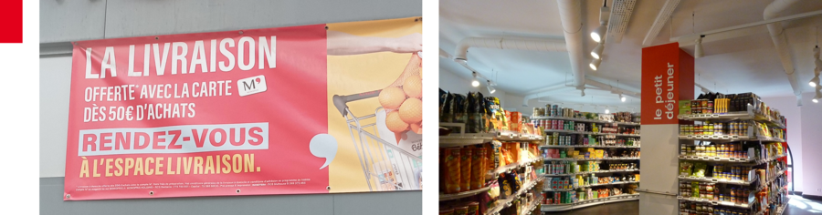 Рекламный баннер Monoprix, Париж, Google Карты / Интерьер Monoprix, Париж, Филиппа Кэмпси и Норман Болл, 2011