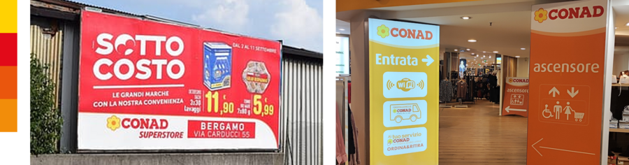 Типографика супермаркетов Рима (слева направо, сверху вниз): (1-3) Сonad; (4, 5) Coop; (6) Pewex. 1-4, 6: Google Карты, 5: социальная сеть Coop