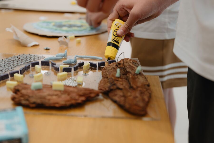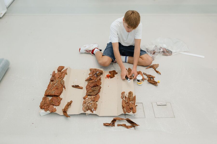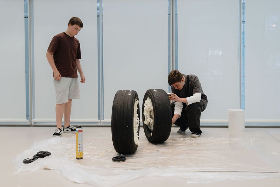 Такая методика отражается и в структуре занятий: обычно они длятся около двух часов и состоят из двух частей — прогулки с теорией и практической частью в классах. Формат предполагает передвижение по точкам, на которых школьники слушают и выполняют небольшие наблюдательные, творческие или двигательные задания. При продумывании плана занятия мы делаем акцента не только на том, что дети видят, но и на том, что они чувствуют, слышат и воображают, поэтому важным принципом является его мультисенсорность. Это помогает обеспечить полное погружение в тему и открыть неожиданные связи между культурой и собственным опытом. Например, можно обратить внимание на занятие «ПроЗвук», где ребята знакомятся с окружающей аудиальной средой ГЭС-2, больше узнают о разнообразных саунд-практиках и создают собственную звуковую карту.
