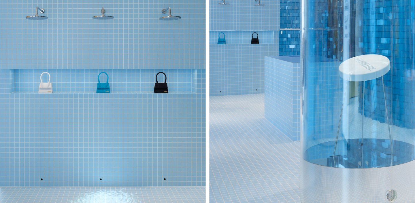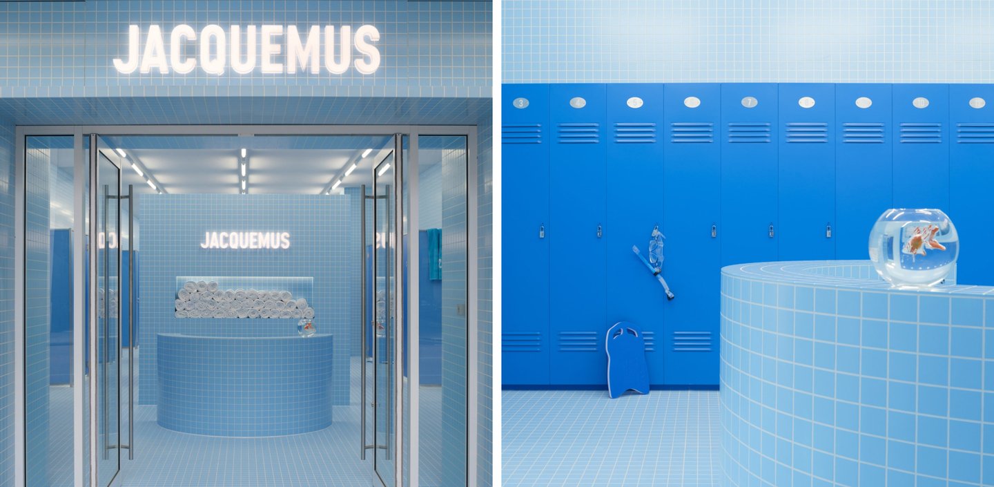 Уникальность поп-ап-форматов Jacquemus в Париже, Милане и Лондоне заключается в том, что эти пространства изначально создавались не как обычные магазины, а как визуальные инсталляции. Каждый поп-ап становился самостоятельной средой с выразительной материальной и цветовой идентичностью: от полностью розового интерьера до стерильно-белых минималистичных залов или инсталляций, напоминающих раздевалки у бассейна. В таких пространствах покупатель не просто смотрел на продукт, а встраивался в настроение и атмосферу бренда.