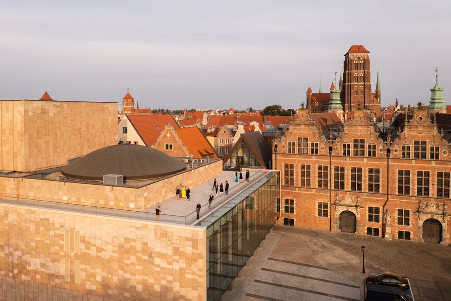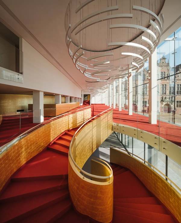 Концепция строится на контрасте: насыщенное материалами фойе и строгий зал, при общем сдержанном дизайне, отдающем максимум пространства искусству. Показ и мероприятия возможны и на крыше‑террасе с видом на старый город Гданьска