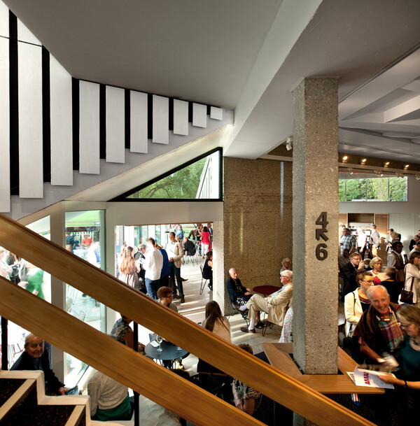 Выразительная консольная бетонная структура и легкая крыша на тросах были смелыми решениями своего времени, но последующие вмешательства с 1970-х годов размыли первоначальную архитектурную идею. Haworth Tompkins демонтировали поздние надстройки, полностью обновили служебные помещения и добавили новую пристройку.