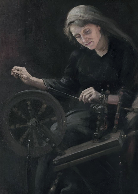 Девочка на переднем плане всячески выражает невинность и доброту. Она мечтательно смотрит прямо на нас, прижимая руки к лицу. Сзади неё — ведьма, орудующая метлой. Она совсем не заинтересована зрителем, а кажется, даже рассказывает что-то девочке, жестикулируя рукой. Что интересно, невозможно утверждать, что эта ведьма — негативный персонаж. Она улыбается, но вроде бы беззлобно, а маленькой метёлкой скорее подметает, чем колдует. Так, мы будто наблюдаем за моментом из жизни бабушки и внучки.