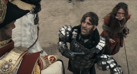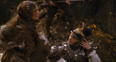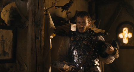 Дизайн персонажей создан так, что при первом же взгляде становится понятно, что эта картина комедийная. Во-первых, слишком блестящий доспех, который становится самым ярким элементом в сцене. Броня обоих героев слишком массивна, очевидно, что она им не подходит.