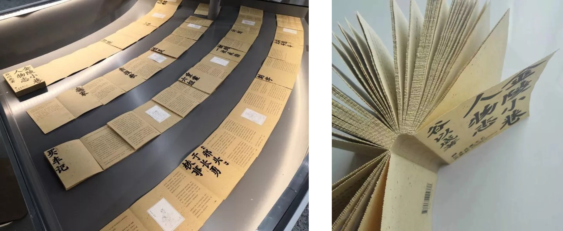 Конструкция книги также переосмысляется современными дизайнерами. Так, например Каталог для художника Ши Хуэя и Книга «Биографии людей с переулков Цзиньлина» грубый традиционный край обреза, который отсылает к традициям книжного дела Китая. По традиционным книжным меркам, у таких книг практически нет обложки, вместо неё используется первая страница первой части переплёта.