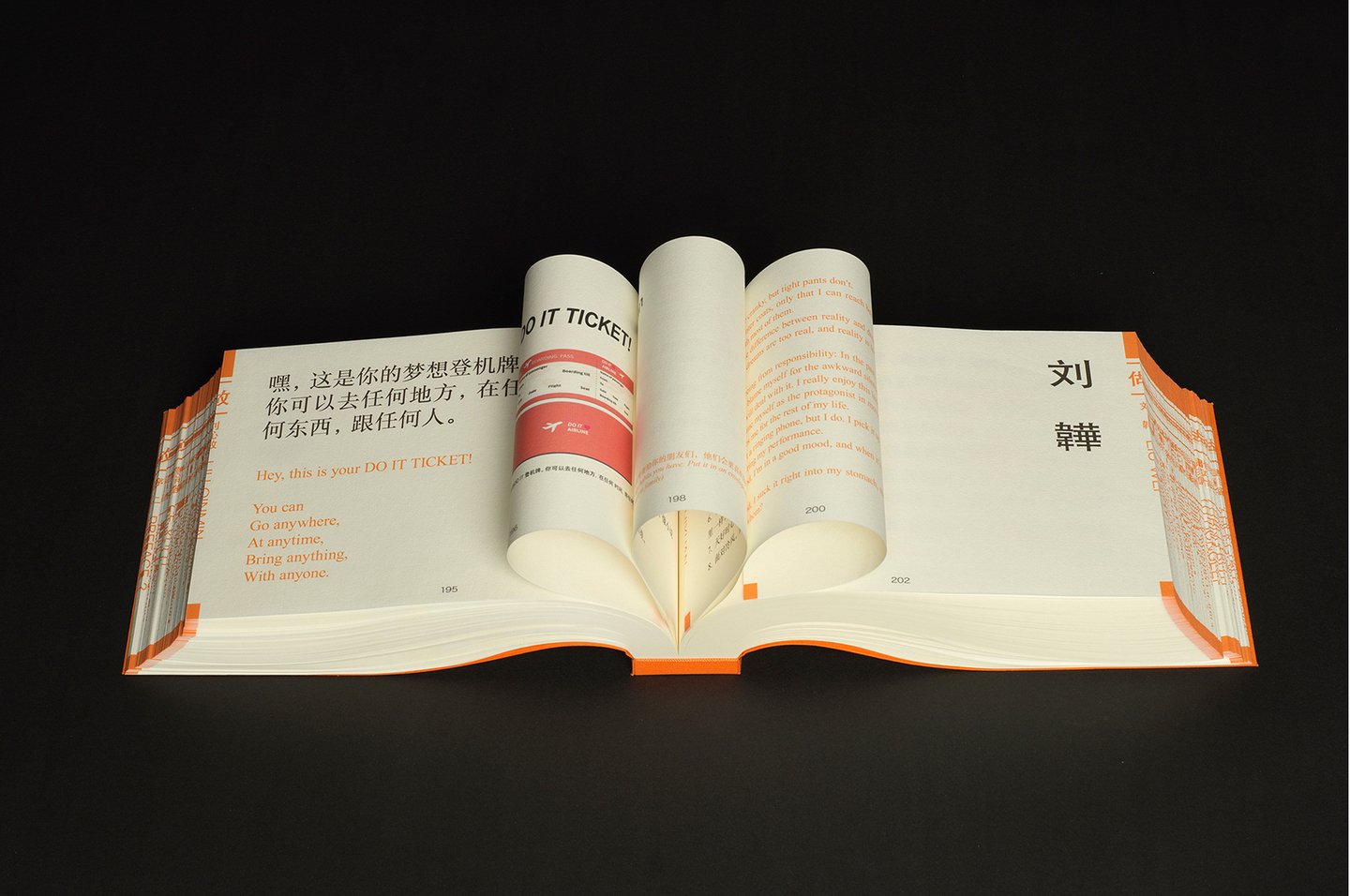 «Сделай это, Китай, 2021» — это проект, совместно курируемый двумя известными кураторами и включающий высказывания 108 китайских художников. Чтобы подчеркнуть его связь с китайским историческим контекстом, книга является прямой отсылкой к древнему китайскому роману «Речные заводи», повествующему о 108 бунтарях. Формат книги отсылает к традиционному китайскому формату книг, где страницы сложены и их сгиб находится на внешней стороне. Книга также имеет традиционный переплет. Имена художников на латинице и китайском языке напечатаны на сгибе страниц, имитируя тем самым навигацию в старинных китайских книгах. Такой прием не только отсылает к исторической верстке и контексту, но и создает новый визуальный паттерн на обрезе издания, который несет в себе синтез двух культур.