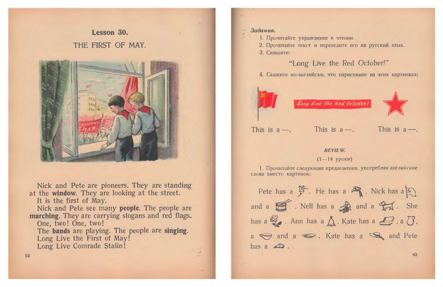 Иллюстрации в советских учебниках английского языка занимали центральное место в системе педагогической визуальности. Они формировали не только визуальный ряд, но и структуру восприятия знания, задавая определённый ритм мышления, в котором обучение языку сочеталось с воспитанием личности. Визуальный материал не был декоративным: он создавал атмосферу учебной дисциплины и идеологической цельности, превращая чтение и рассмотрение страниц в воспитательный акт.