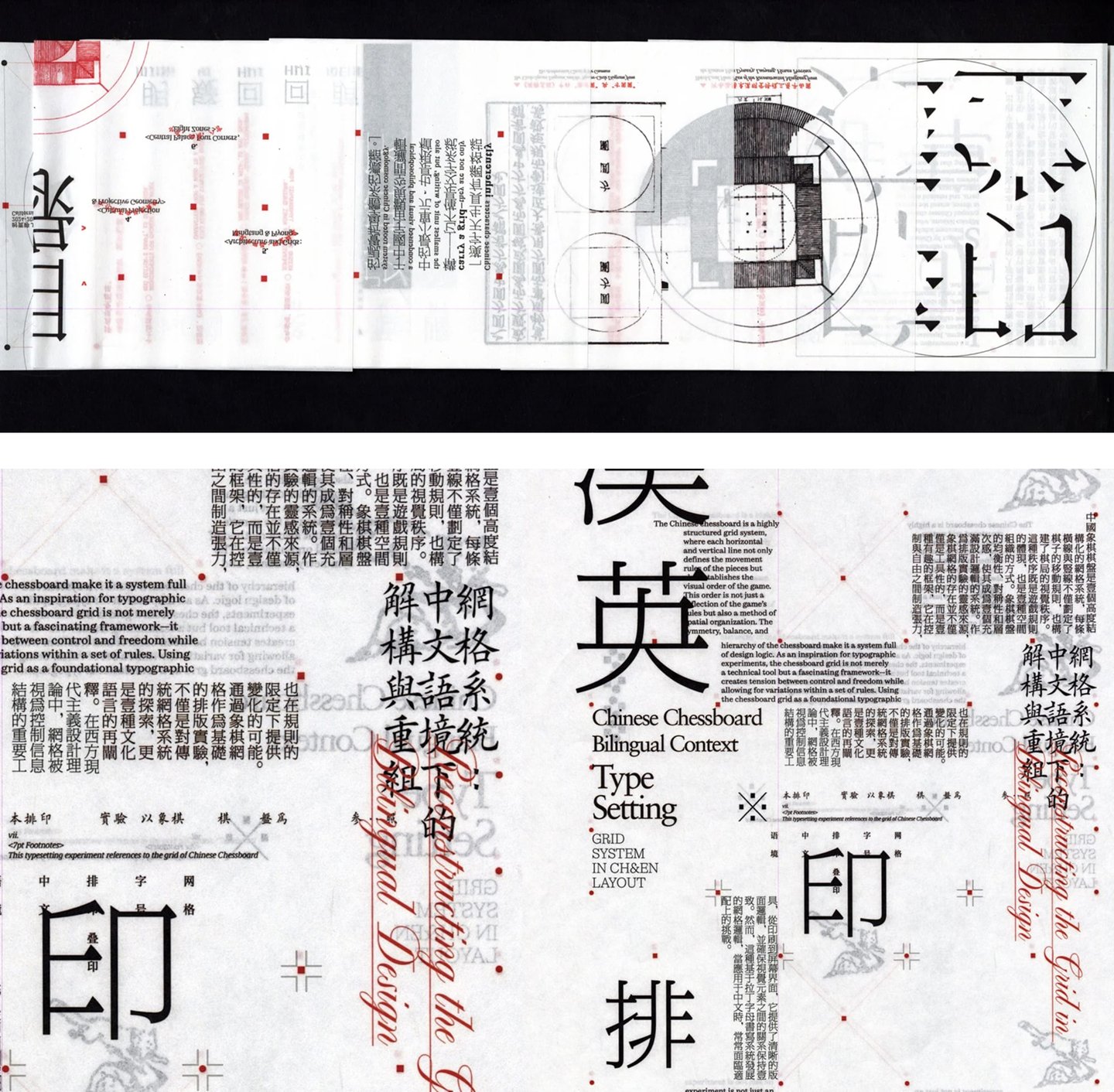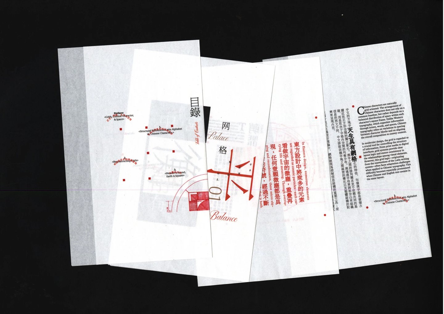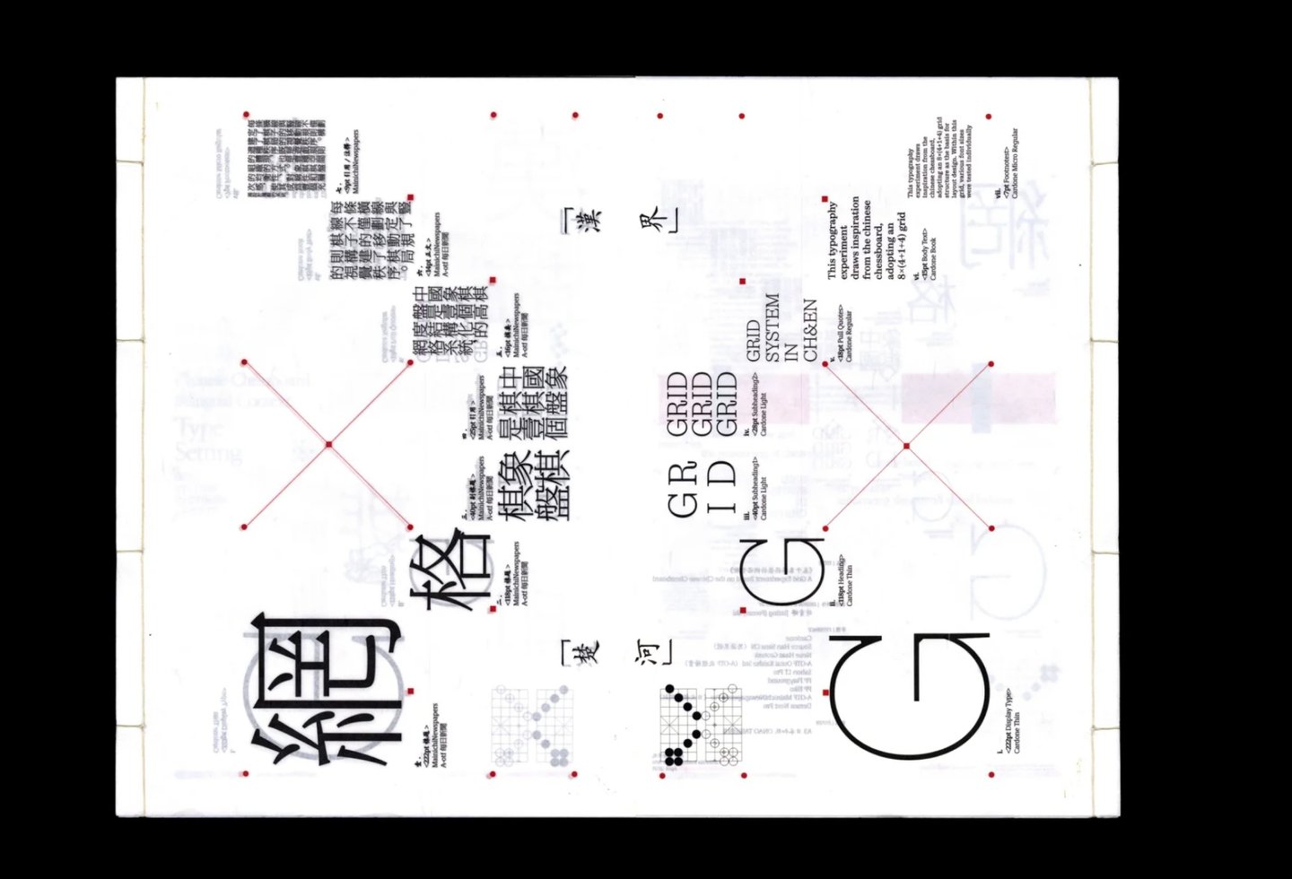 В работе «Реконструкция сетки: китайская типографика в контексте двуязычного дизайна» Цзятин Ши размышляет над сеткой в контексте китайской типографики и латинской, ее возможностями, расположением текста и знаков внутри нее. Как взаимодействуют эти сетки, Цзятин Ши размышляет про их структуру, правила, отличия и различия.