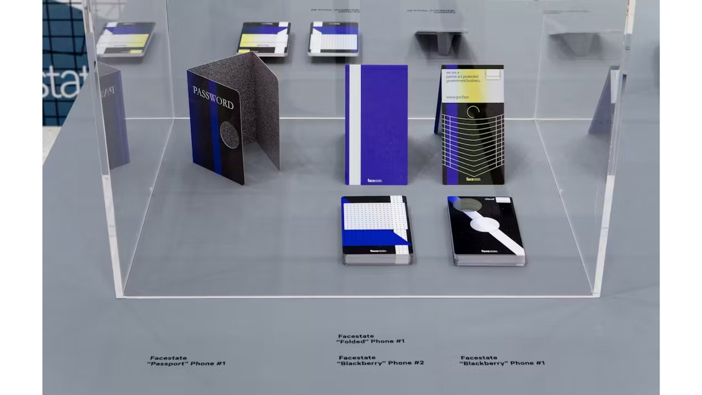 Метахэвен (Metahaven). Части выставки «Facestate» (2011): устройство Facestate для распознавания лиц, вид интерфейсов устройств