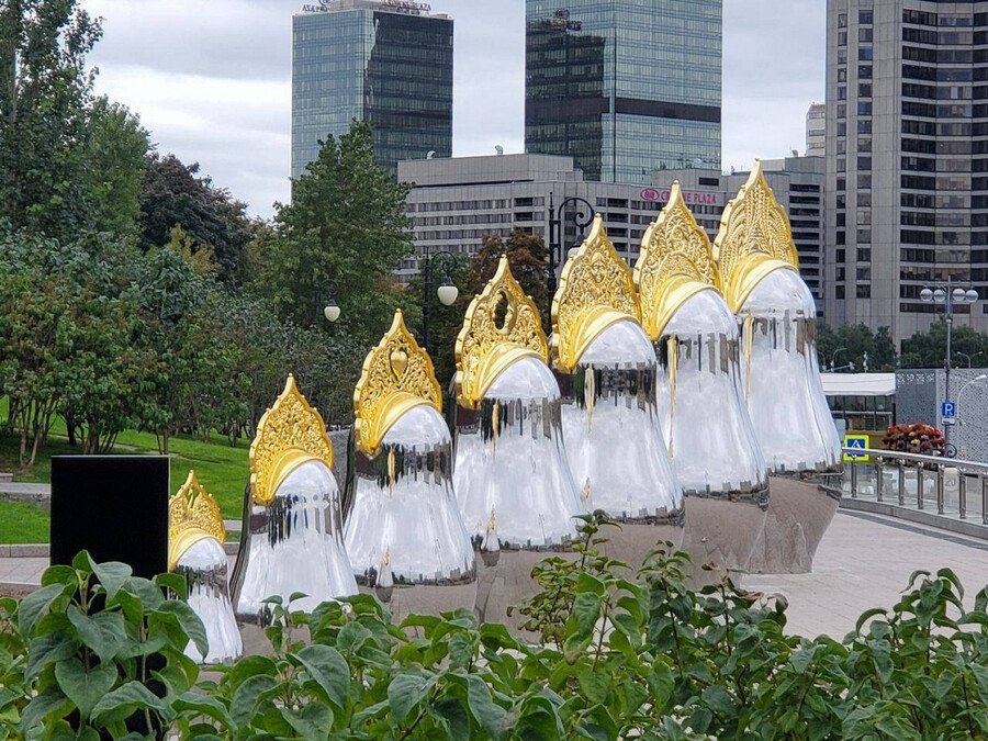 Данный арт-объект — это семь матрешек разных размеров. Их рост (Рис. 2.2) символизирует этапы взросления человека в плане физическом, умственном, социальном и духовном. Жемчуг в отделке означает чистоту, здоровье и достаток. Кокошники у матрешек — иллюстрация многогранности русской души (Рис. 2.3). Зеркала на скульптурах отражают современную жизнь, где всё меняется быстро, как настроение или погода. Резные узоры на кокошниках, разные у каждой матрешки, несут в себе важные для каждого человека смыслы, составляющие русскую идентичность.