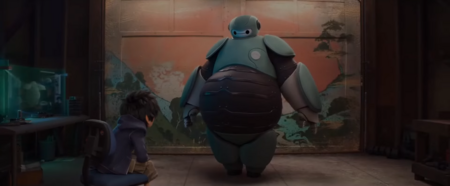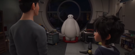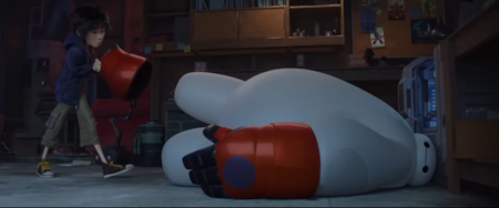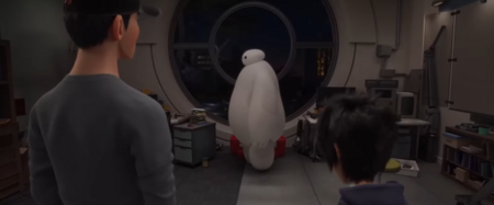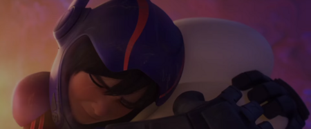 Сцена в конце мультфильма, в которой робот жертвуя собой спасает Хиро, является самой яркой иллюстрацией отношений героев друг к другу. Преданное создание, следуя заложенной программе, возвращает мальчика в безопасный мир, а само остается в портале навсегда.