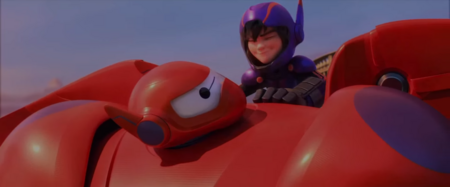 Говоря о символике цвета, важно отметить, что красная броня, которую создает для Беймакса Хиро, визуально меняет характер героя. Яркий цвет ассоциируется с агрессией и борьбой. В последующих сценах, когда робот появляется в этом облачении он действительно проявляет большую и даже разрушительную силу, однако все ещё в попытке защитить Хиро.