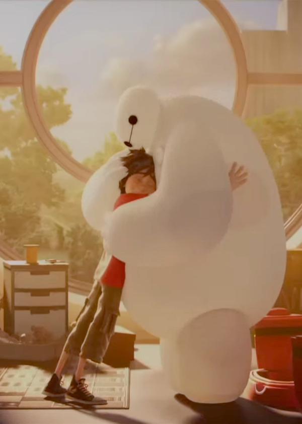Преданность создателю и забота робота о нем демонстрируется в нескольких сценах спасения Хиро. Фигура Беймакса визуально походит на подушку безопасности. Создание часто обнимает мальчика, предотвращая травмы или удары.