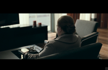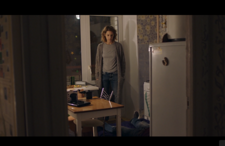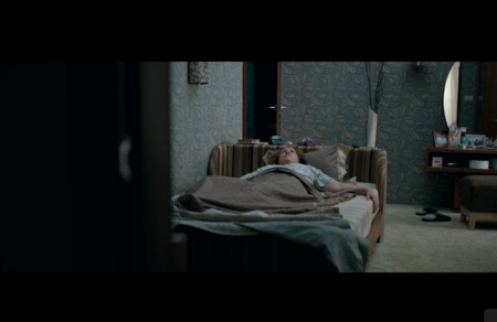 Крупные планы героини передают другое ощущение. Если он — размытый и ускользающий, то она — собранная, словно всё время удерживает внутри напряжение. Её взгляд более прямой, но не менее отчаявшийся. Крупный план фиксирует, как усталость превращается в постоянную скованность, в отказ от реакции не потому, что нечего сказать, а потому что сил на это больше нет.