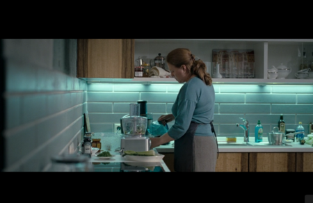 Дом функционирует как витрина, внутри которой человеку неуютно. Холодные стальные, голубые, серо-синие оттенки формируют визуальный код, связанный с фигурой Владимира, его властью и контролем. Даже бытовые объекты имеют голубую подсветку и напоминают о медицинской стерильности и дистанции.