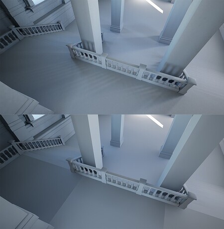 Плагин Luoshuang’s GPU Lightmass — это плагин для Unreal Engine, который значительно ускоряет процесс запекания. Основное преимущество — это быстрое и качественное глобальное освещение, что особенно важно для фотореалистичных сцен и архитектурной визуализации. В качестве его основного алгоритма применяется метод brute force, который даёт более точные результаты, чем стандартный метод с кэшированием. Плагин создает реалистичные тени и качественный ambient occlusion между объектами.