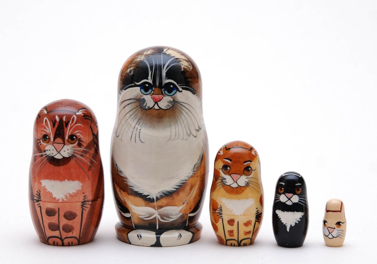 Рис. 1.1 Авторская матрёшка с изображением сов, автор и фотограф неизвестен. Рис. 1.2 Авторская матрёшка с изображением котов, автор и фотограф неизвестен.