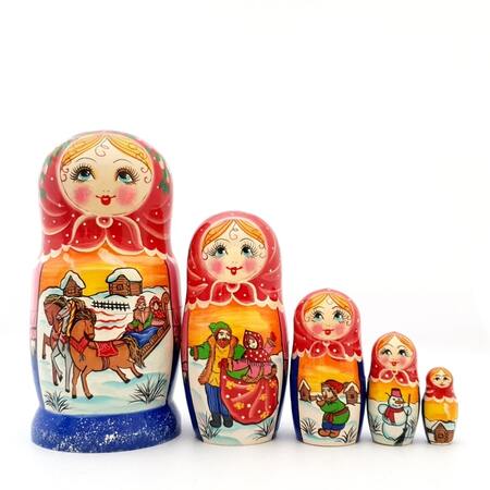 Рис. 1.8 Авторская коллекция матрёшек с изображением сказки «Зимние забавы». Рис. 1.9 Авторская коллекция матрёшек с изображением сказки «Маша и медведь». Компания «Матрешки Оптом».