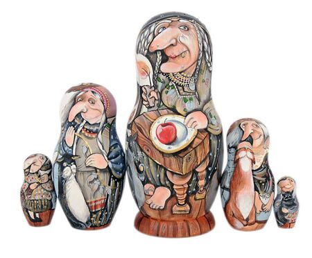 Рис. 1.3 Авторская коллекия матрёшек с изображением Бабы Яги, спереди. Автор и фотограф неизвестен. Рис. 1.4 Авторская коллекия матрёшек с изображением Бабы Яги, вид сзади. Автор и фотограф неизвестен