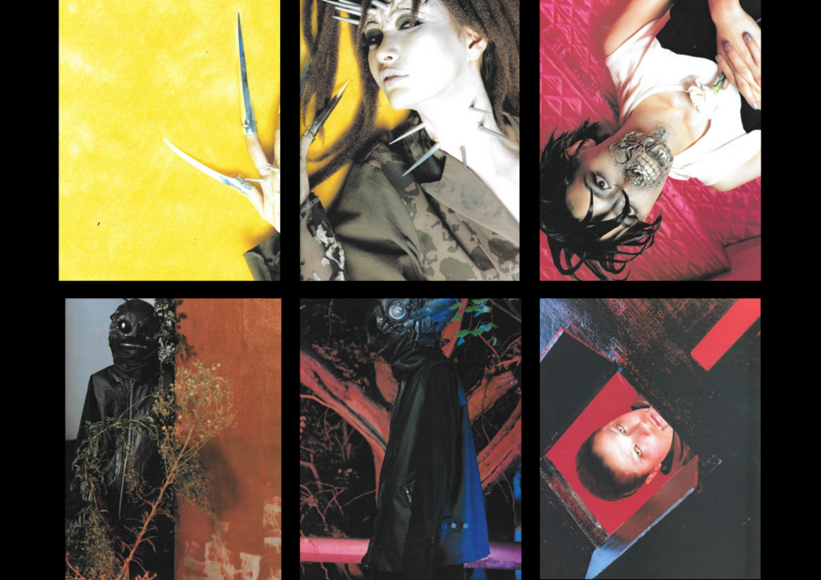 Фотокнига Under the Cover (SS 1996), созданная совместно со спецэффект-художником Screaming Mad George, представляет коллекцию как хоррор-нарратив: модели превращаются в гибридных существ, одежда сращивается с телом, а фотографии выглядят как кадры из экспериментального фильма. Здесь деконструкция проявляется на уровне тела и идентичности — привычный образ модели разрушен и переписан через визуальный язык ужаса.