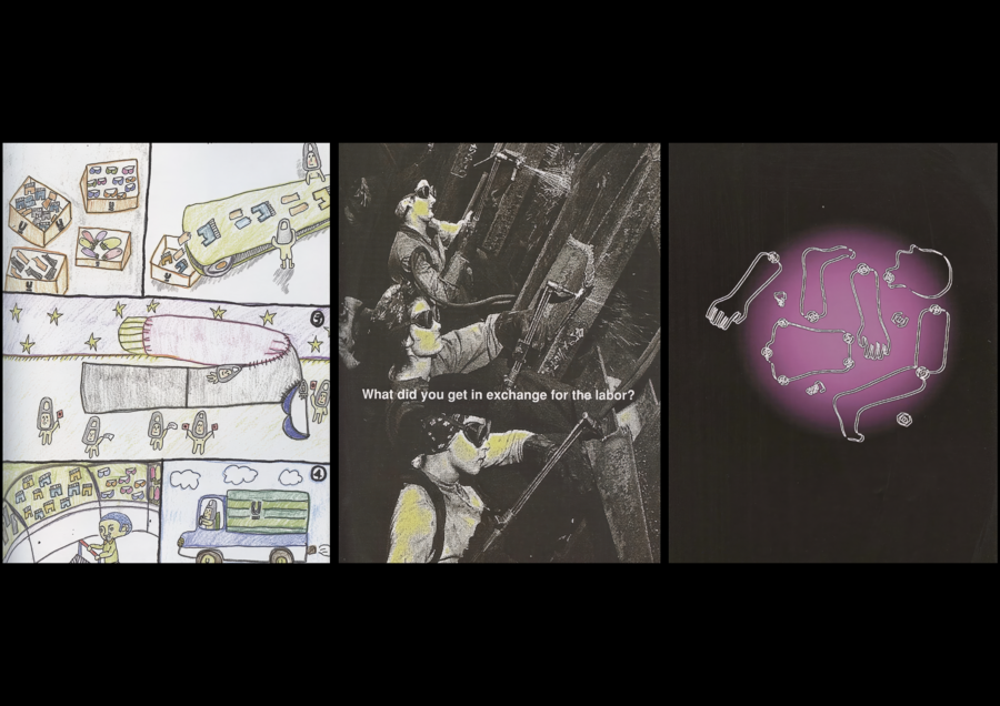 Каталог Small Parts/Exchange (AW 1998) оформлен как инструкция к модульному гардеробу: страницы напоминают техническое пособие, а графику и персонажа Pointman разрабатывает Futura 2000. Издание опирается на комиксную структуру: последовательность кадров, реплики, схемы. Так классический лукбук смещается в зону мануала и графического романа.