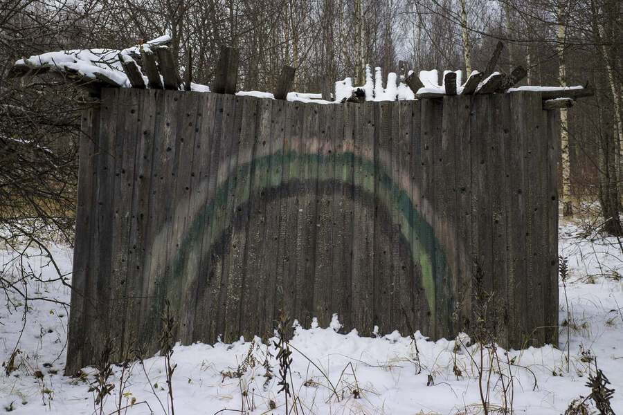 Работа «Старая Радуга» (2022) — часть проекта «Загородные практики», единственный из девяти рисунков этого проекта, который было решено сохранить. Постройка, на которой изначально была создана эта работа практически обветшала, а сам рисунок был законсервирован. Большая часть рисунков того времени исчезла естественным образом: выцвели на солнце или сгнили вместе с упавшими строениями.