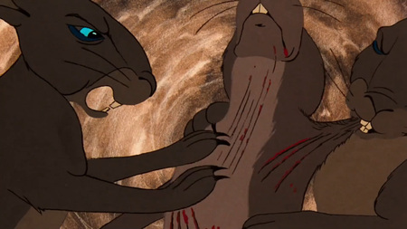 В отличие от, например, студии «Дисней», известной своими персонажами-животными, создатели картины не боятся графично и ярко показывать насилие в картине с рейтингом PG. Сами персонажи также выглядят натуралистичнее, придавай истории серьёзности и суровости. Схватка между Ваундвортом и Бигвигом, другом Хейзела, действительно жестока и кровопролитна, причём оба героя показаны одинаково «по-животному» свирепыми.