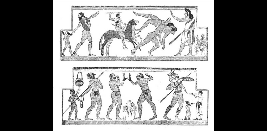 (рис. 8) Этрусские танцы и представления. Фрагмент росписи в пещере Скимия Корнето, около 500 г. до н. э
