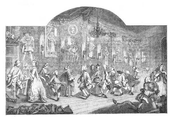 (рис. 22) Бальный танец «Le Bal Paré » XVIII века. Автор — Огюст де Л’Обен. / (рис. 23) Танец XVIII века. С картины Хогарта.