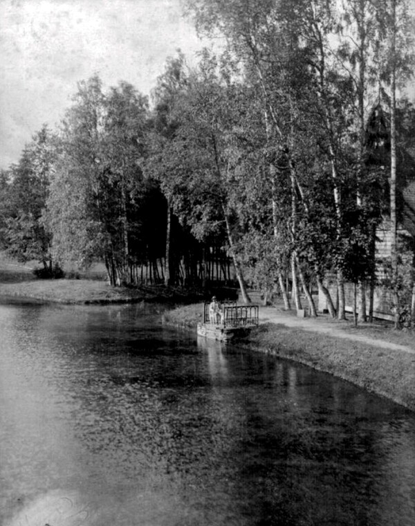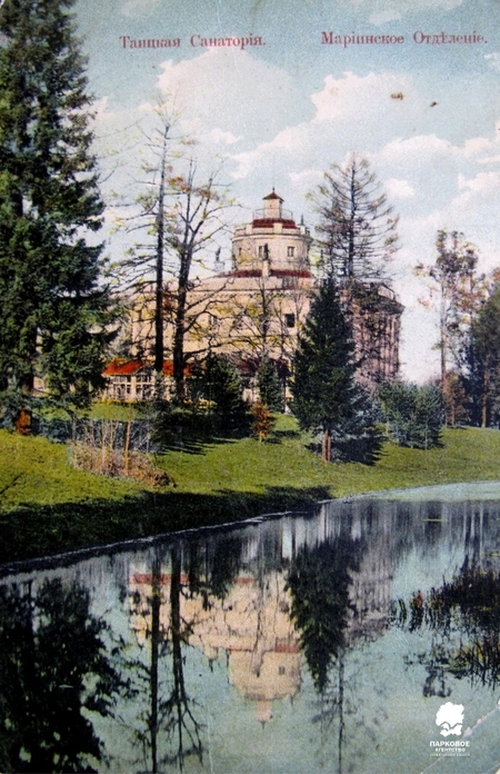 Женское Мариинское отделение Таицкого санатория. Открытка начала XX века. Таицкая санатория. Вид пруда в парке. Кон. XIX — нач. XX вв. СПБ ГБУК «Государственный музей истории Санкт-Петербурга».
