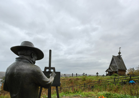На картине «Церковь над вечным покоем» изображена Воскресенская церковь на высоком берегу, среди трав и деревьев. Современное изображение фиксирует ту же деревянную церковь, но с другого ракурса и с облагорожена территория.