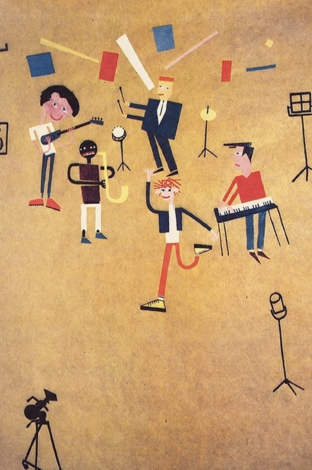 «Новые художники» разработали визуальный язык с использованием простых линий, контрастных цветов и геометрических фигур. Этот графический код напрямую перекочевал в обложки альбомов, афиши и сценические костюмы ленинградских рок-групп.