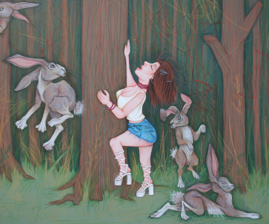 «Девушка» 90×60 см Холст, акрил, карандаши, масляные мелки