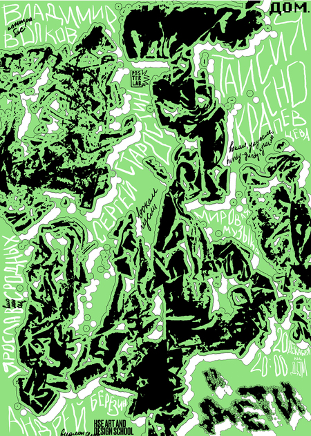 The poster was designed with a wet napkin and an eyelash brush soaked in the carcass.