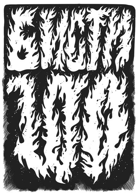 The form of the flame languages was taken from Bisty’s work, and the drawing was then traversed to produce neat and smooth lines, like a fire cut out. It complements the composition of the bar-making, which also conveys the style of Dmitry Spiridonovich.