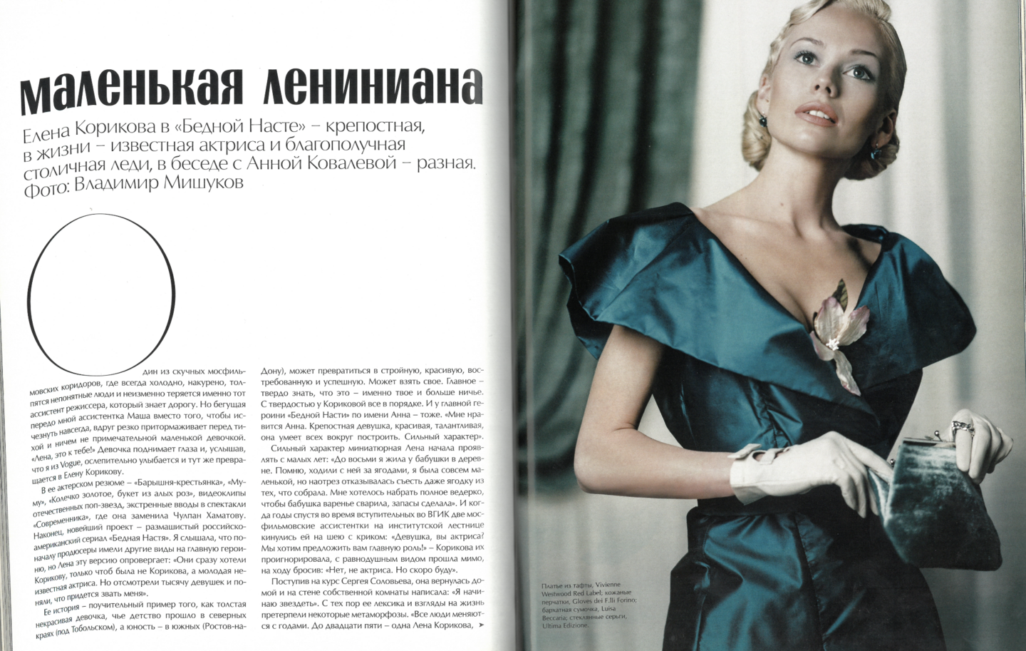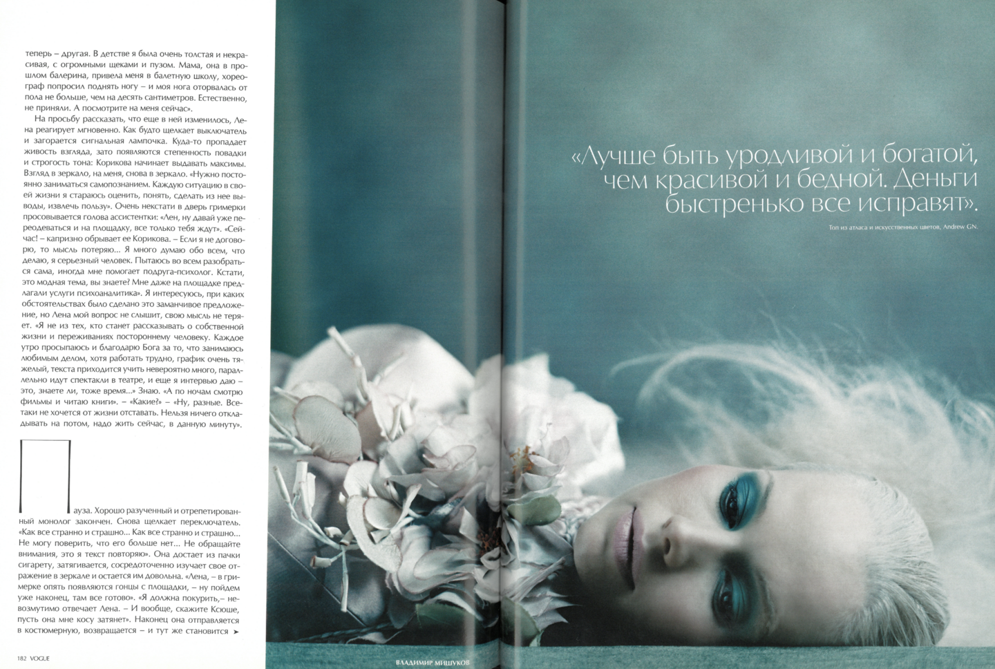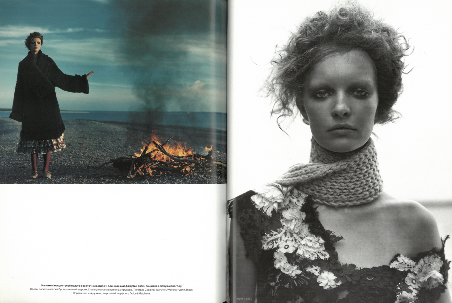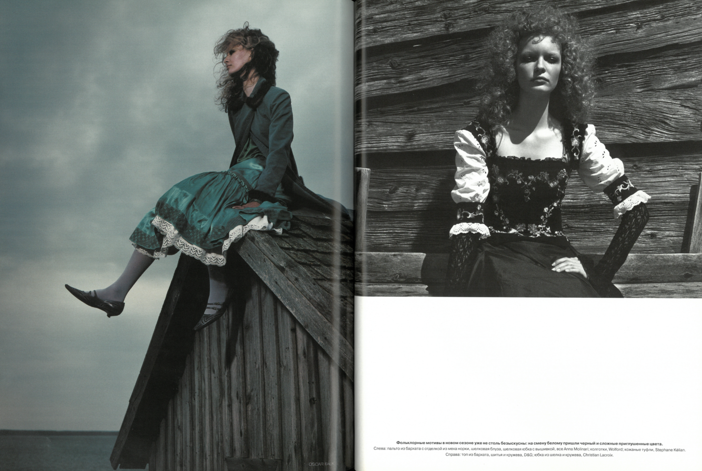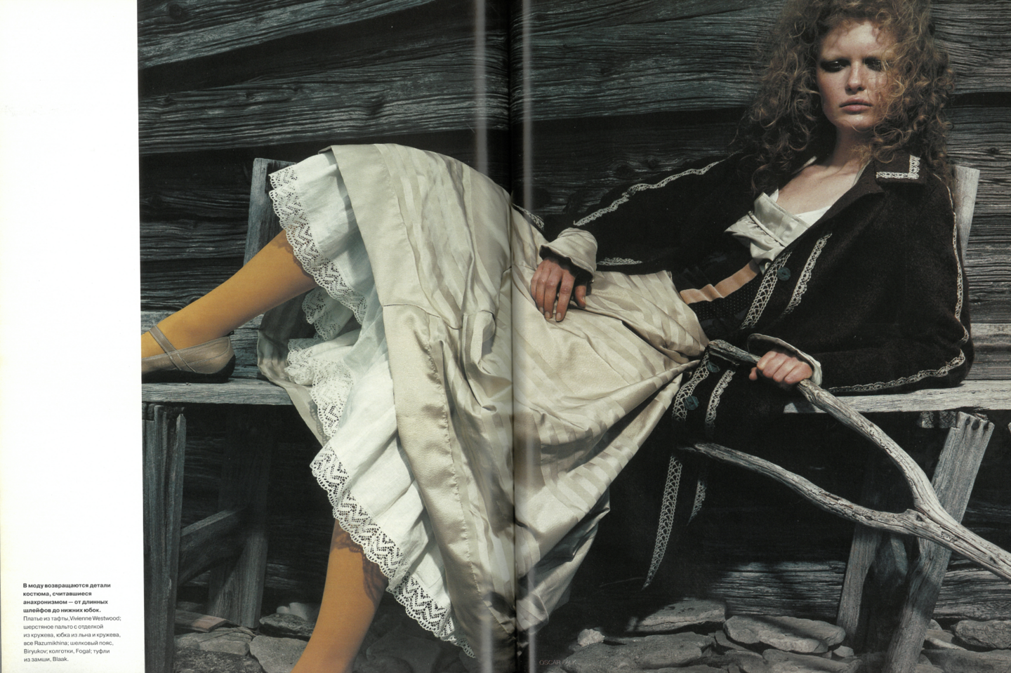«Песня Сольвейг». В съемке использована одежда в том числе российских дизайнеров: Razumikhina, Biryukov, Poustovit Vogue, сентябрь 2002