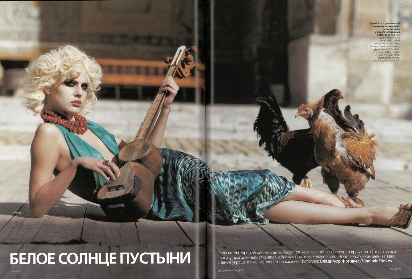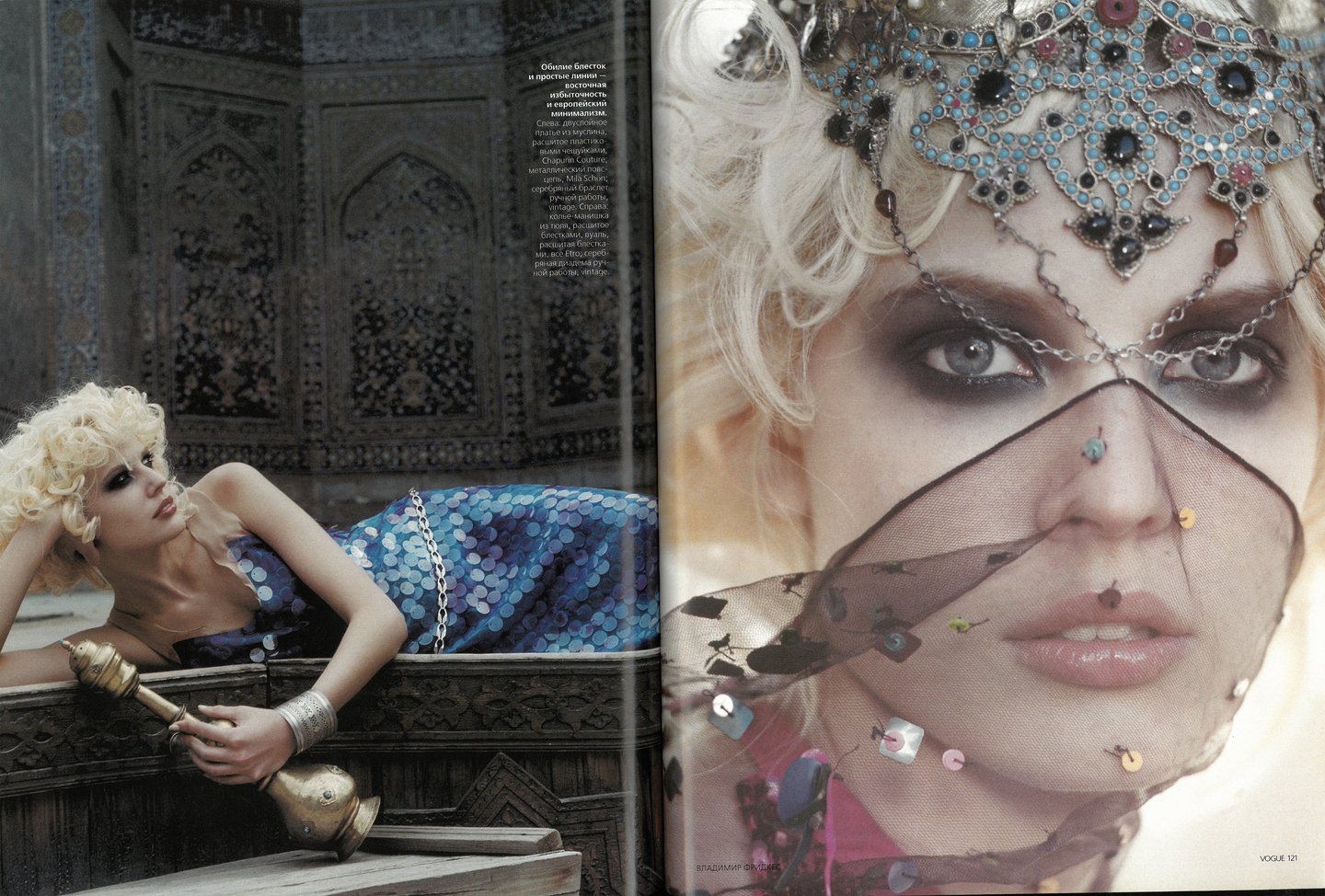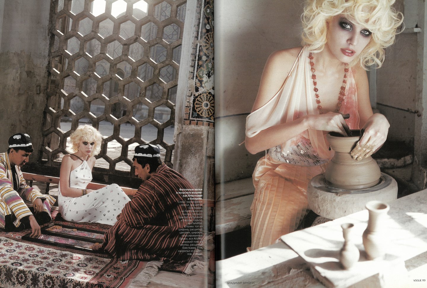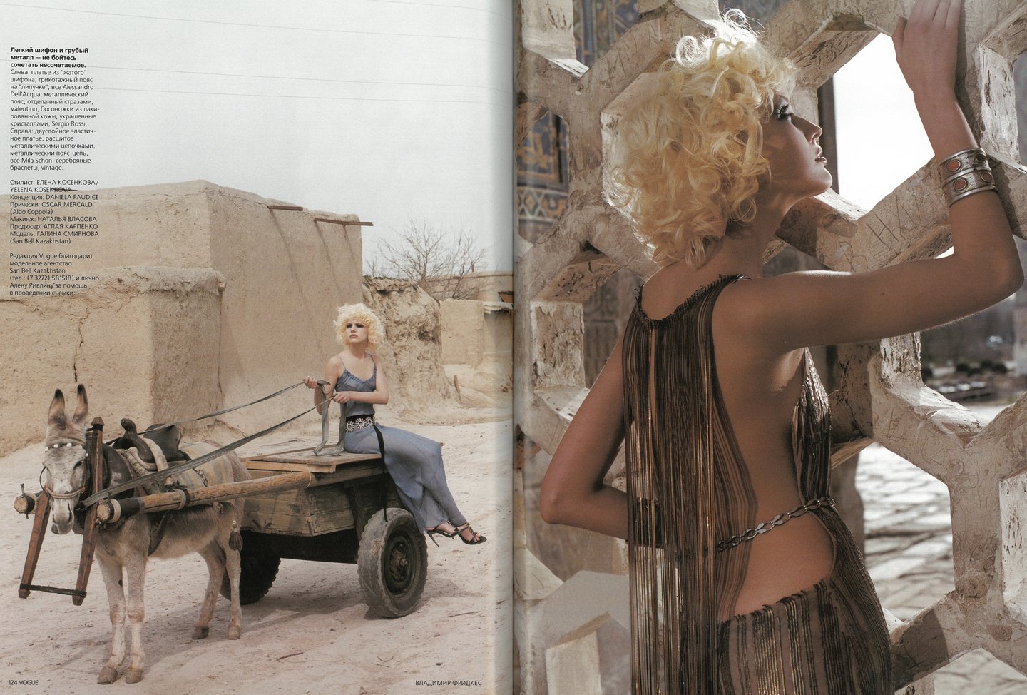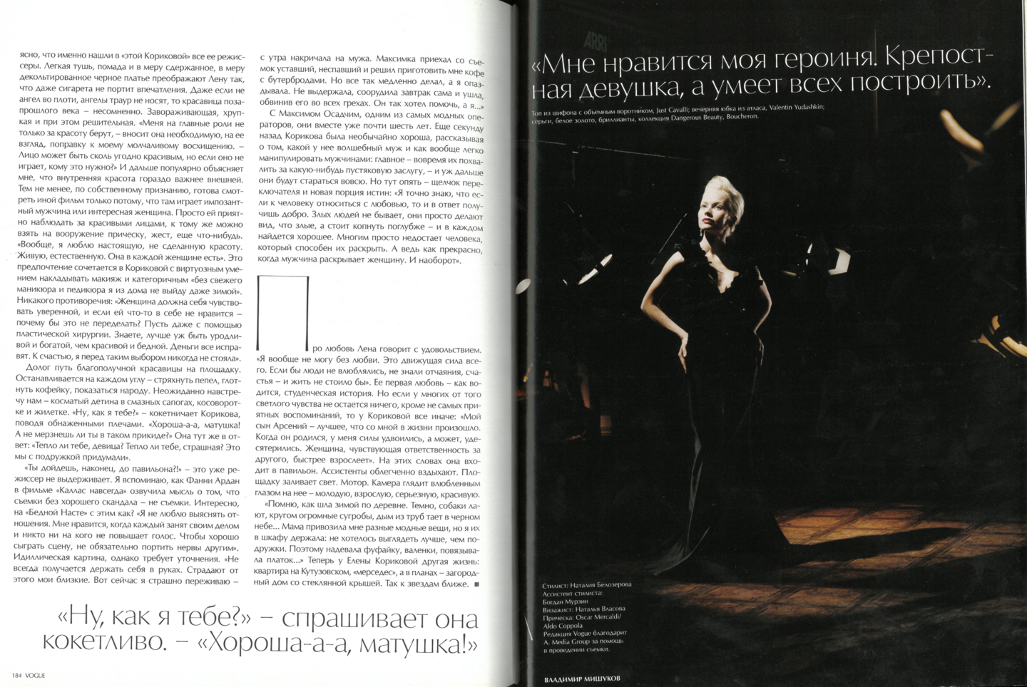 «Песня Сольвейг». В съемке использована одежда в том числе российских дизайнеров: Razumikhina, Biryukov, Poustovit Vogue, сентябрь 2002