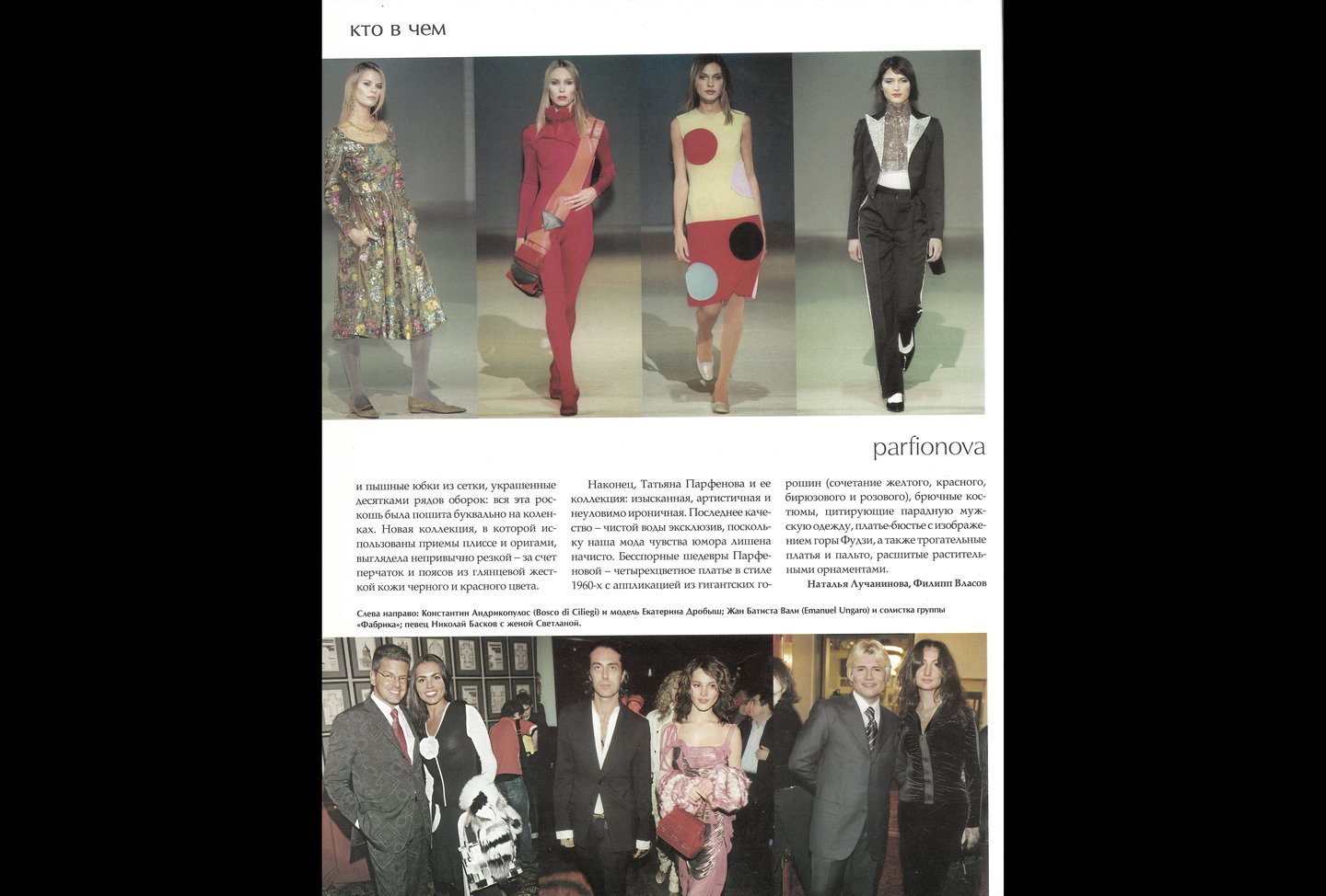 Для российских дизайнеров оставались четко определенные форматы: хроники недель моды, новости об открытии магазинов, фотографии с красных дорожек и светских раутов. Даже актрис, для съемок с которыми раньше подбиралась одежда от российских дизайнеров, в начале двухтысячных все чаще можно увидеть в MaxMara, Gucci или Prada.