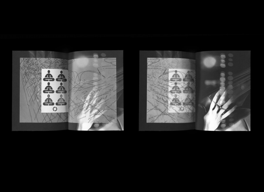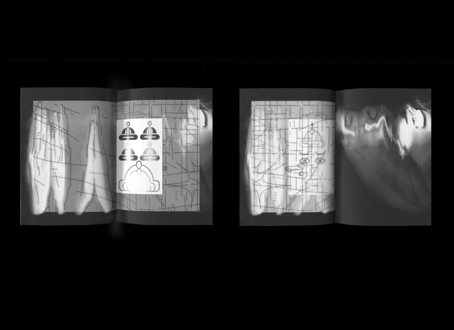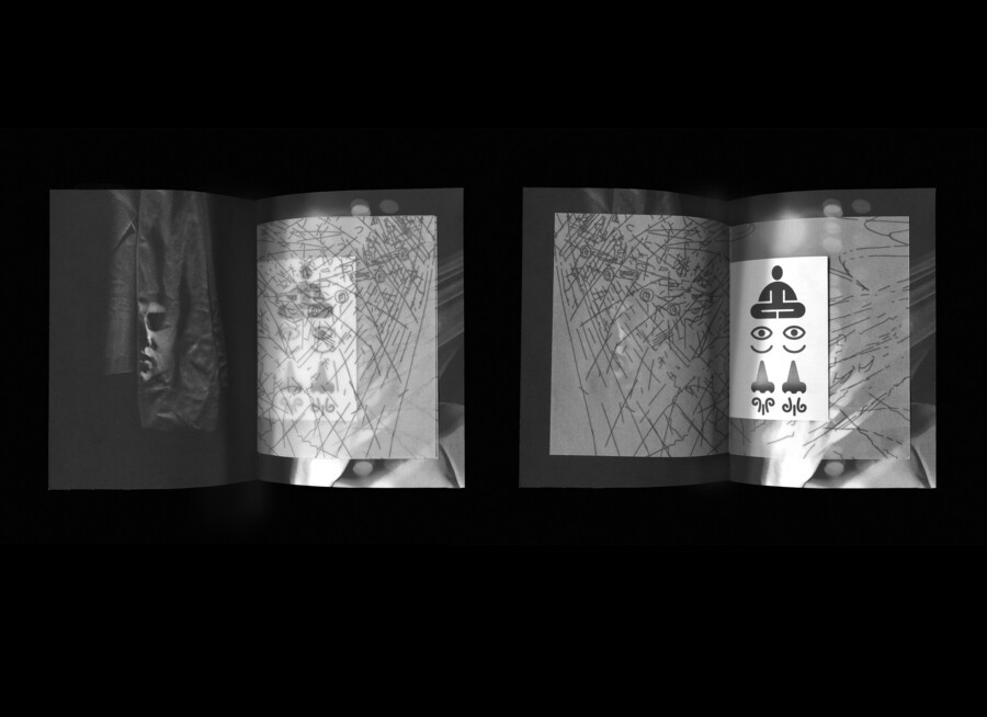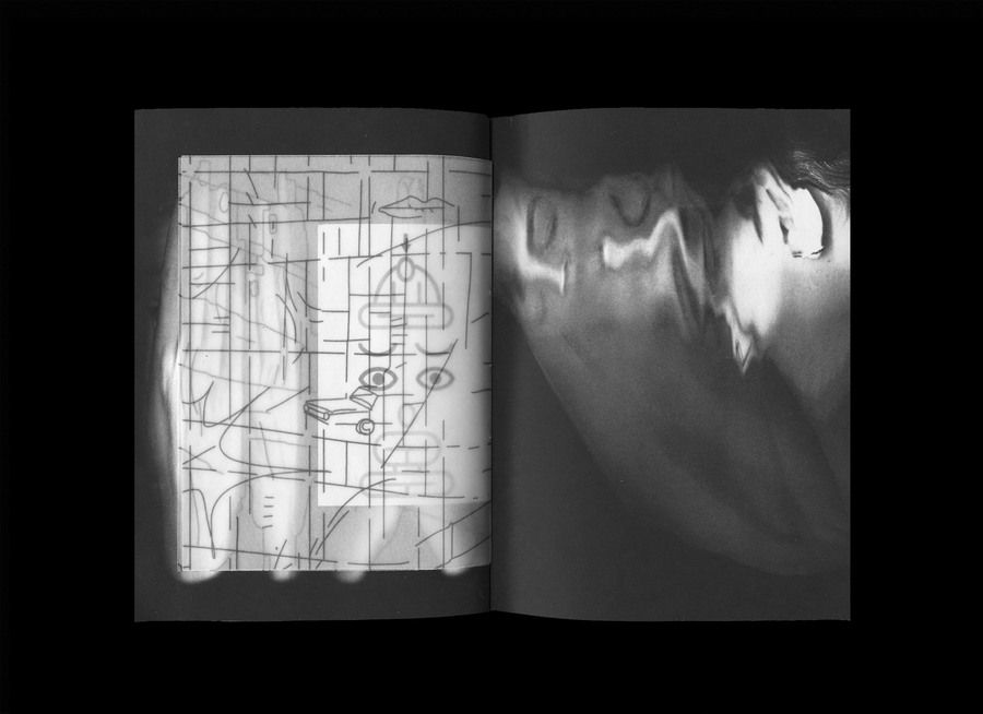 Зин состоит из 18 страниц, которые при перелистывании создают многослойное изображение. Каждый элемент выполнен в свое технике, темные развороты являются цифровыми коллажами собранными из пленочных фотографий и сканов.
