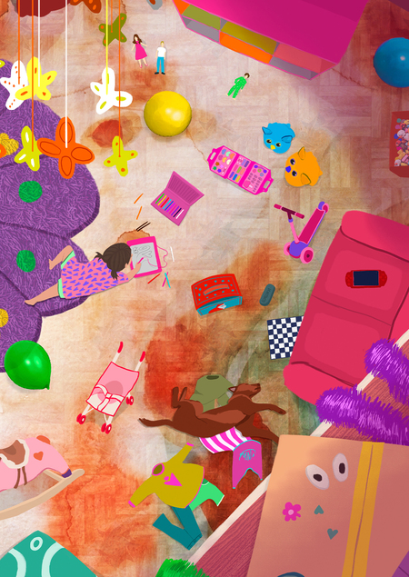 Серия иллюстраций для виммельбуха «Детское творчество» заключает в себе воспоминания о прошедшем в нулевых годах детстве. Для воссоздания атмосферы были взяты праздники — Новый год и День Рождения, ведь именно эти моменты наиболее ярко отпечатываются в памяти.