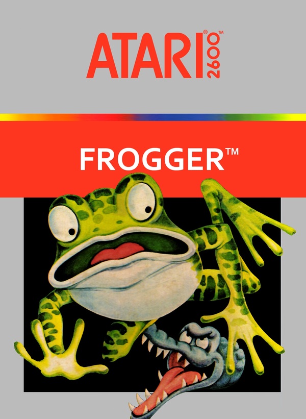 Аркадный автомат Frogger слева и обложка игры для домашних консолей справа.