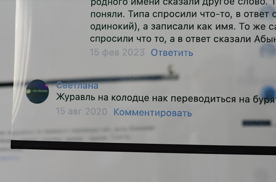 Внутри сайта с бурятским словарем buryat-lang.ru существует форум, где каждый может задать вопрос, поделиться мнением или помочь с переводом. Это цифровое поле стало стартовой точкой размышлений о языковом ландшафте, раскрывая «срез» актуальных запросов о бурятском языке: признаний в любви, школьных обзывательств, бытовых вопросов, рецептов и семейных историй.