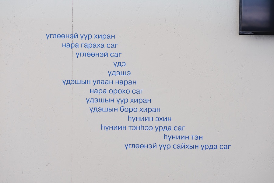 Европоцентричное время поглотило существование разных темпоральностей. Механизмы глобализации привели к унификации систем времени — распространению григорианского календаря, отсчету суток от Гринвичского меридиана, встрече Нового года в январе. В Бурятии же распространение общей временной структуры было проведено во время советизации. Традиционный бурятский календарь имеет сложную систему, базирующуюся на лунном календаре, а суточный цикл отсчитывается по движению солнца. Работа «Үдэр һүнигүй» (в переводе с бурятского: весь день напролет) — это попытка отойти от колониальной перспективы унифицированного времени.
