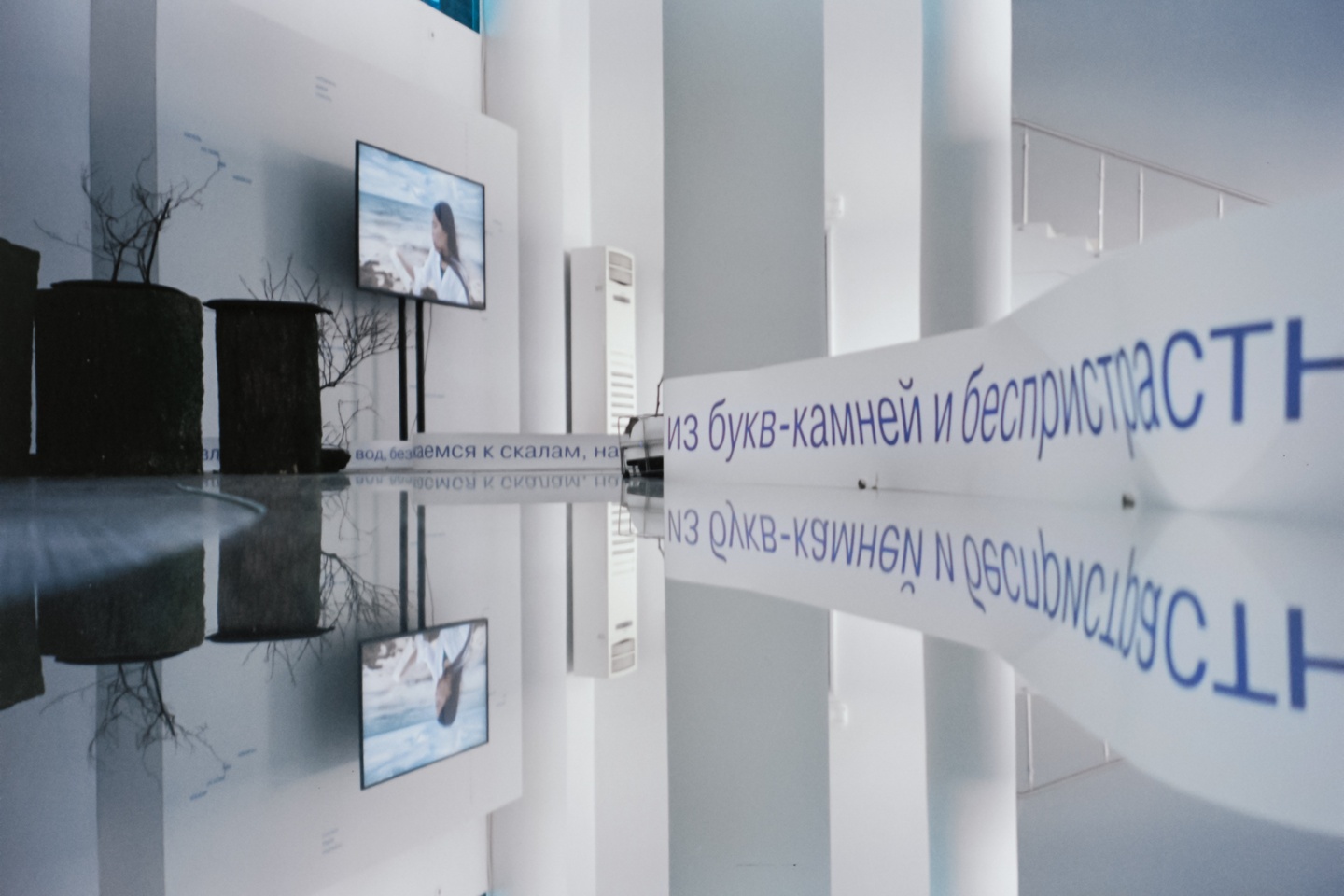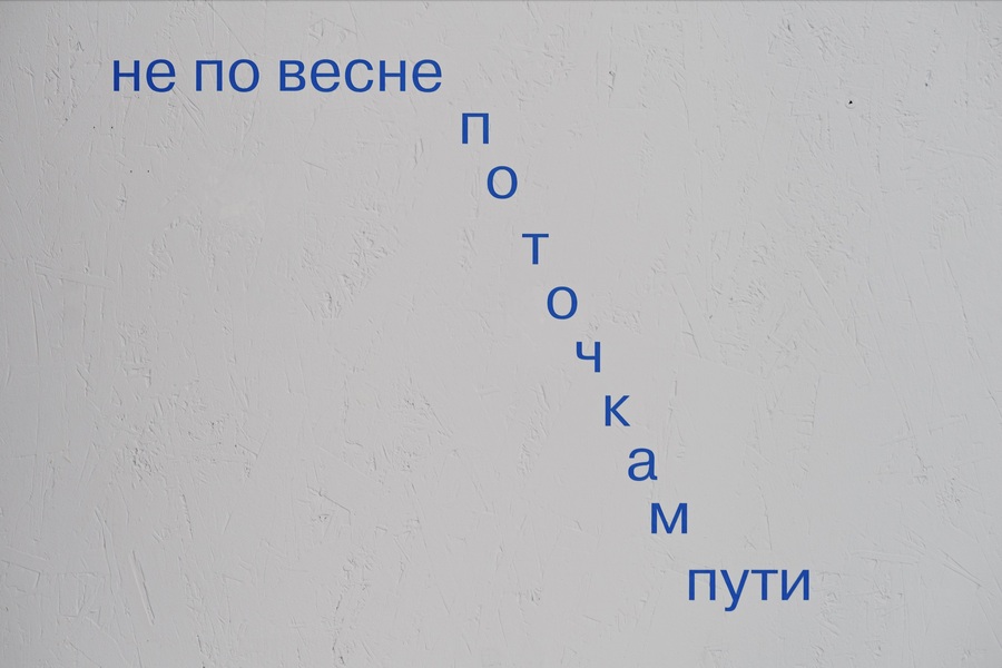 Зрителю выставки предлагается пройти по языковому ландшафту, который расположился по пространству, перейдя из физического пространства в над-измерение, где текст существует на равных с другими объектами.