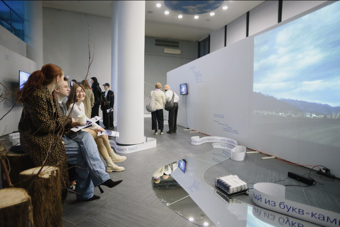 Связующим элементом выставки является метафора языкового ландшафта. Архитектура выставки имитирует ландшафт, включая в себя камни, реки в форме зеркал, пни и ветки. Текстовые ленты дополняют путь и ведут поэтический нарратив по выставке. Дизайн и архитектура выставки была создана Аделиной Фишовой.