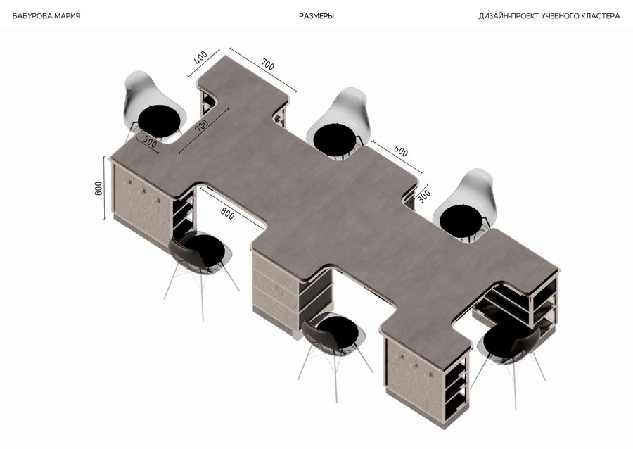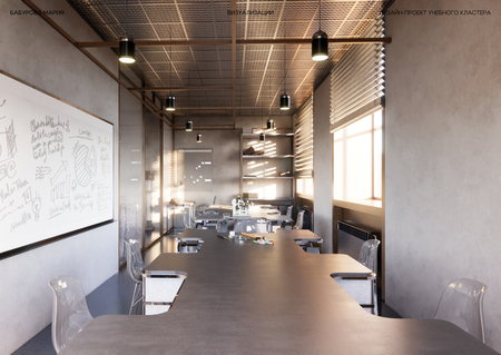 - Клаузура представляет собой большой макетный стол на 6 человек для занятий арт-практики.