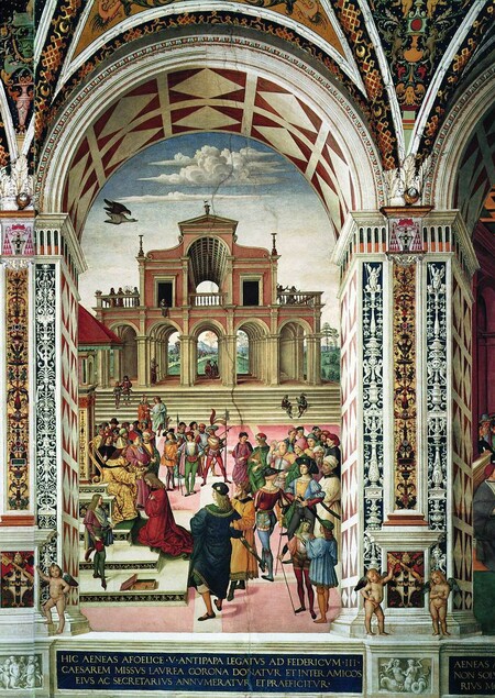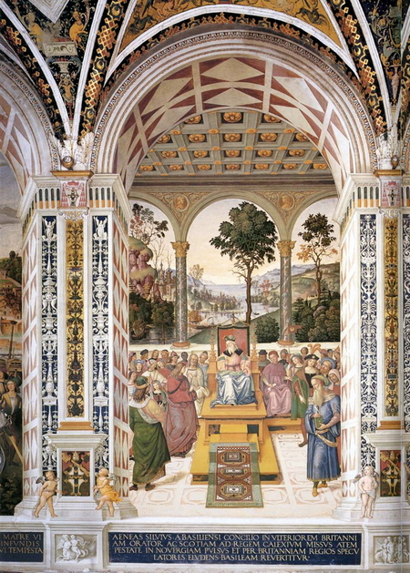 Фрагмент росписи в Библиотеке Пикколомини в кафедральном соборе Сиены.