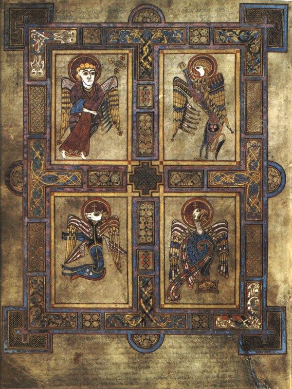 Все они декоративны, обрамлены орнаментом и несут в себе символические образы, чем изображение разворачивающихся событий. Начало Евангелия от Иоанна воспринимается как ковёр, покрытый сложным узором переплетений, кругов, спиралей и извивающихся змей. В этом орнаментальном переплетении скрыты первые слова текста: «In principio erat Verbum et Verbum…» — «В начале было Слово и Слово…». Именно эта особая роль орнамента многое говорит о состоянии искусства этой эпохи.