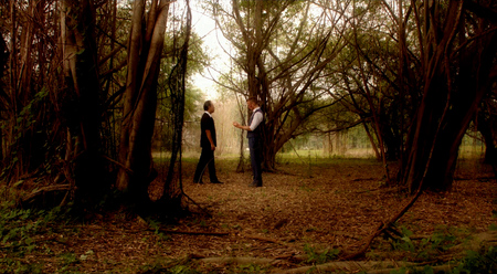 Зеленый сопровождает брата и мать Джулиана. Кадры из фильма «Только Бог Простит» (2013), реж. — Николас Виндинг Рефн, DP — Ларри Смит