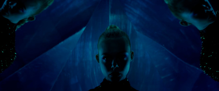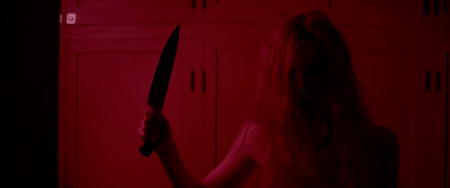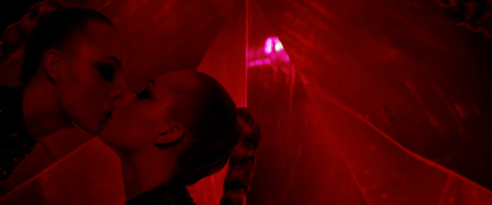 Синий переходит в красный — возрастающая зависть и жажда мести Руби. Кадры из фильма «Неоновый Демон» (2016), реж. — Николас Виндинг Рефн, DP — Наташа Брайер
